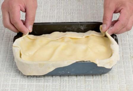 9 . Загнуть концы сырого теста кверху. Смажьте сливочным маслом и отправьте в разогретый до 200 °С духовой шкаф на 30 минут