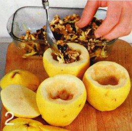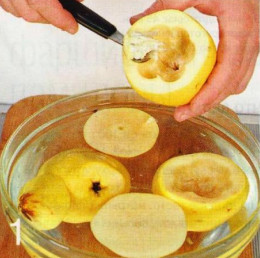После чего вырезаем у айвы сердцевину и окунуть плоды в холодную воду.