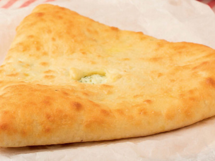 7 . Слегка раскатайте тесто в лепешку. В середину положите начинку. Собрать тесто треугольником и защипнуть края.