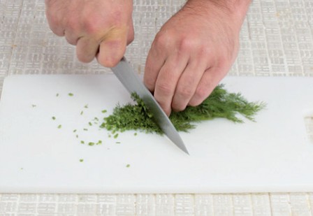 5 . Размять сыр (если он несоленый, добавьте соли). Измельчить укроп.