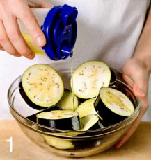 | Время приготовления : 40 минут | | Количество порций : 6 штук | баклажаны с гранатовым соусом Вам понадобится : 3 больших баклажана, 2 крупных красных сладких перца, 1 маленькая луковица, 200 гр. несоленой брынзы, 2 зубчика чеснока, сок 1 лимона, небольшой пучок мяты, 2 ст. ложки гранатового соуса наршараб, 6 ст. ложки оливкового масла, 1 ч. ложку семян зиры, 0,5 ч. ложки молотой корицы, соль и свежемолотый черный перец по вкусу  | 1 . Нарежьте баклажаны кружками 2 см толщиной. Смажьте кружки маслом, посыпьте солью и корицей. Запеките баклажаны на углях, переворачивая, до золотистой корочки. |  | 2 . Сладкие перцы очистите, разрезав вдоль на четвертинки. Запеките перцы на углях кожицей вниз до почернения, сложите в пакет, плотно закройте и оставьте на 10 минут |  | 3 . «Отпотевшие» перцы очистите от кожицы и нарежьте узкими полосками. Или можете не резать ножом, а порвать руками на продолговатые кусочки произвольной формы. |  | 4 . Брынзу нарежьте ломтиками, лук -толстыми перьями, сбрызните лук лимонным соком. |  | 5 . Для заправки раздавите, очистите и измельчите чеснок. Смешайте чеснок, соль и перец по вкусу, гранатовый соус и масло. Мелко порубите листочки мяты (стебли не понадобятся). |  | 6 . Выложите на блюдо баклажаны и перец, сверху уложите брынзу, лук. Полейте заправкой и посыпьте рубленой мятой. | |