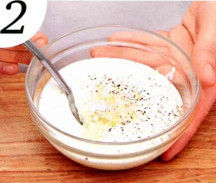 рулет лаваш с баклажанами 2 . Смешайте половину чеснока с соевым йогуртом или сметаной, солью и перцем.