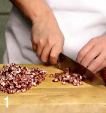 2 . Масло разогрейте в небольшом сотейнике с толстым дном, обжарьте в нем лук на среднем огне до мягкости, 5 минут. Добавьте колбаски, готовьте, помешивая, 8-10 минут. Снимите с огня, слейте весь жир.