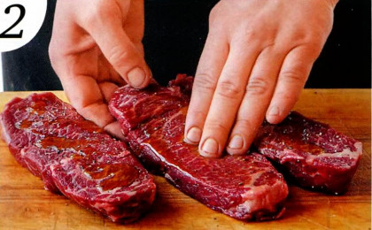 Приготовление : | 1 . Лучше всего купить стейки заранее. Заверните их по отдельности в пергамент, положите в холодильник на 24—48 часов.