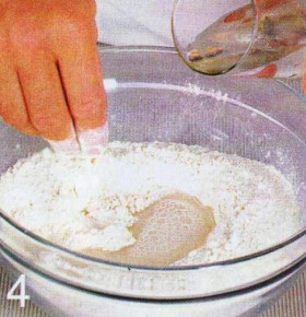 4. Пока готовится рагу, замесить довольно крутое тесто из просеянной муки с щепоткой соли, добавляя питьевую воду в несколько приемов. Тесто