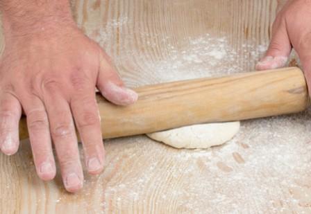 4. Разделите тесто на три куска. Раскатать каждый в лепешку диаметром 12-13 см.