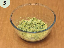 | 5 . Смешайте желтки, авокадо, зелень, немного посолите |