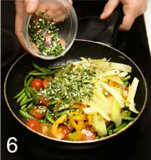 | Время приготовления : 30 минут | | Количество порций : 4 - штуки | Готовим зеленую фасоль с помидорами Вам понадобится : 400 гр.замороженной целой зеленой фасоли , 200 гр. помидоров черри, 1 большой желтый сладкий перец, 1 большая красная луковица, 3 зубчика чеснока, 1 небольшой пучок петрушки, оливковое масло, соль, черный перец, французский багет для подачи  | 1 . Сладкий желтый перец разрежьте вдоль на четвертинки, удалите семена, плодоножку и перегородки. Нарежьте поперек очень тонкой соломкой. |  | 2 . Чеснок раздавите, очистите и порубите. Очень мелко нарежьте петрушку, удаляя жесткие концы стеблей. Соедините петрушку и чеснок и порубите как можно мельче все вместе. |  | 3 . Луковицу очистите и нарежьте перьями шириной 1 см. Разогрейте в сковороде 2 ст ложки оливкового масла, на сильном огне быстро обжарьте лук, не более 3 минут, помниет он должен остаться хрустящим |  | 4 . Выньте лук шумовкой из сковороды, подлейте чуть-чуть масла и обжарьте так же сладкий перец - он должен остаться хрустящим. Переложите перец к луку |  | 5 . В сковороду подлейте еще немного масла, положите замороженную фасоль и готовьте на сильном огне под крышкой, иногда перемешивая, 4 минуты. |  | 6 . Разрежьте помидоры черри пополам. Добавьте к фасоли помидоры, через 1 минуту жареный лук и перец, посыпьте смесью петрушки и чеснока, солью и перцем. Обжаривайте без крышки 1-2 минуты. Подавайте немедленно, с обжаренным в тостере багетом. | Предлагаем посмотреть рецепты на пасху: |