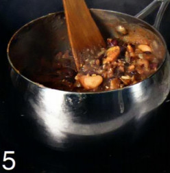5 . Продолжайте варите, все время перемешивая, пока масса в кастрюле не станет густой с еле видимыми комочками, примерно 10 минут.