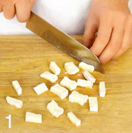1 . Разрежьте холодный сыр на 36 небольших кусочков, положите на блюдо и поставьте в морозильник на 20 минут.