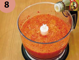 В блендере измельчить помидоры, болгарский перец, огурцы, лук, чеснок