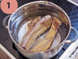 | 1 . Ребрышки залейте водой, поставьте на огонь, варите в течение 30–40 минут |