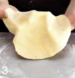 1 . Для теста просейте муку с солью и содой горкой, сделайте углубление, вбейте туда яйца и добавьте сахар. Постепенно вливая сыворотку или сметану, замесите тесто. Вымешивайте, пока тесто не перестанет отлипать от рук, примерно 10 минут. Оно должно получиться мягким. Накройте тесто и оставьте на 30 минут