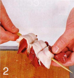 2 . Обернуть кусок печенки полоской
