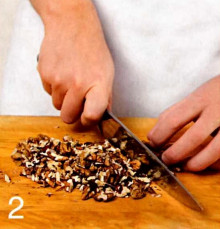 2 . Курагу для начинки залейте горячей водой на 30 минут, держите под крышкой. Орехи порубите не слишком мелко, внимательно следя за тем, чтобы не попадались осколки скорлупы или перегородок. |