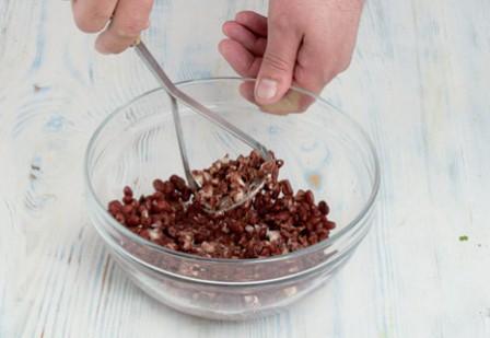 4. Отварите фасоль до готовности и размять ее (или прокрутить через мясорубку). |