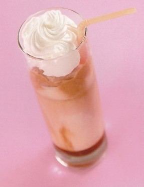| Коктейль Румяная дикарка Вам понадобится : Посуда : Стакан хайбол. сироп Гренадин 1 дэш сок банановый 100 мл сок лимонный 10 мл мороженое 100 гр. содовая Приготовление : Мороженое и соки взбейте в блендере, перелейте в стакан хайбол. Долейте содовой и добавьте сироп Гренадин. Украсьте взбитыми сливками.