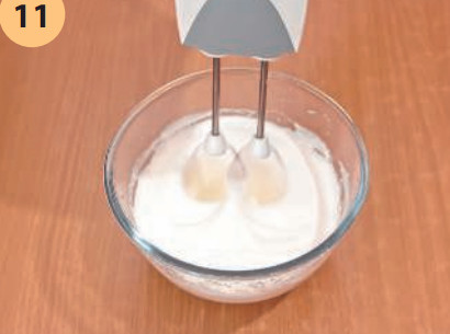 | 10 . Белки взбить в пену. Чтобы белки лучше взбились, можно добавьте немного соли. |