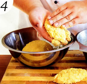4. Разогрейте растительное масло в большой глубокой сковороде слоем 1 см. Берите руками капустную массу размером чуть меньше теннисного мячика, обваливайте в сухарях и, слегка сплющивая, кладите в масло.