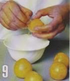 | 8. С хлеба срезать корку. Мякиш размочить в сливках. Когда хлеб размокнет, перемешать его со сливками до получения однородной массы. |  | 9. Желтые сливы вымыть, очистить от кожицы, удалить косточки. Мякоть переложить в миску и раздавить столовой ложкой до состояния пюре. Для соуса можно использовать и перезрелые плоды (естественно, не подгнившие). |  | 10. Полученное сливовое пюре налить в хлебную массу. Тщательно размешать. Чтобы сохранить янтарный цвет нужно добавить немного лимоной куслоты.Поставить соус на слабый огонь, при постоянном помешивании довести до кипения. Если соус получается слишком густым, следует добавить в него воды до получения консистенции густой сметаны |