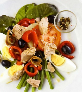 | Салат с апельсинамиВам понадобится : 3 апельсина, 1 сладкая красная луковица, 20 маслин,1 ст. ложка каперсов,2 ст. ложки оливкового масла,соль и свежемолотый черный перец по вкусу Подробнее? |  | Cалат с фетой по-греческиВам понадобится : 1/2 упаковки салата «Джаз» в горшочке, 1/2 упаковки салата «Кантри» в горшочке, 250 гр. феты, 1/2 упаковки петрушки в горшочке,2 ст. ложки каперсов, 3 помидора,1 сладкий оранжевый или желтый перец,1 красная сладкая луковица, 3 веточки орегано,оливковое масло, соль и свежемолотый черный перец по вкусу Подробнее? |  | Cалат «весенний» (ссср) Вам понадобится : половина кочана молодой капусты,1 пучок (8-10 штук) редиса, 4 молодых огурчика, 1 средний пучок зеленого лука, 1 небольшой пучок укропа, 3 яйца,4 ст. ложки простокваши или сметаны, 2 ст. ложки подсолнечного масла, 1 ч. ложки хрена или горчицы, по желаниюсоль и свежемолотый черный перец по вкусу Подробнее? |  | Cалат «нисуаз» (франция)Вам понадобится : 2 банки (по 250 гр. ) тунца в собственном соку,500 гр. зеленой фасоли,250 гр. картофеля,200 гр. любых салатных листьев,2 средних помидора,1 красный сладкий перец,3 яйцагорсть мелких маслинбез косточек,8 филе анчоусов, оливковое масло(по необходимости), Для заправки : 100 мл оливкового масла, 1 зубчик чеснока,2 ст. ложки белого винного уксуса,соль, свежемолотыйчерный перец Подробнее? |  | Салат из редискиВам понадобится : 2 пучка (по 10-12 штук) молодого редиса, 1 небольшой пучок мяты, 1 большой лимон, 1 большой апельсин,хлопья чили,соль и свежемолотый черный перец по вкусу Подробнее? |  | Готовим салат из цукини Вам понадобится : 4 небольшие картофелины, 4 небольших цукини, 1 небольшой пучок мяты, 2-3 веточки тархуна, сок половины лимона, оливковое масло, 0,5 ч. ложки смеси прованских трав, соль, черный перец Подробнее? |  | Готовим морковный салат с орехами Вам понадобится : 4-5 средних морковок, по 20 гр. жареного фундука и грецких орехов, 1 средний пучок петрушки, сок и цедра половины лимона, нерафинированное оливковое или ореховое масло, 1 ст. ложка горчицы с зернышками, 0,5 ч. ложки меда, соль, свежемолотый белый перец Подробнее? |  | Готовим винегрет с грибами Вам понадобится : 2 средние свеклы, 4 средние морковки, 4 средние картофелины, 150-200 гр. соленых грибов(белые или черные грузди, маслята, опята), 7-10 стеблей зеленого лука, нерафинированное подсолнечное масло, соль и свежемолотый черный перец по вкусу Подробнее? | |