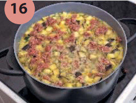 | 16 . Добавьте фарш, маленькими кусочками. Варите 15 минут |