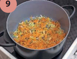 | 15 . Затем налейте 2,5 литра воды, посолите, поперчите. Довести до кипения. |