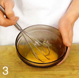 3 . Отделите белки от желтков. Чуть подогрейте 50-70 гр. топленого масла, чтобы оно стало текучим, и смешайте его с желтками. Белки пока что отставьте.