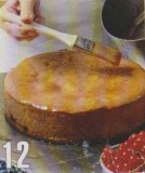 12 . В сироп, оставшийся после варки яблок в вине, добавить желатин, и довести до кипения, но не кипятить. Снять с огня.Полученным горячим желе с помощью кулинарной кисточки аккуратно обмазать поверхность пирога и его края. Дать желе застыть.