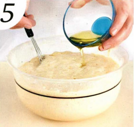 5 . Затем добавьте масло, перемешайте, снова закройте пленкой и оставьте подниматься еще на 30-60 минут. Больше не перемешивайте!