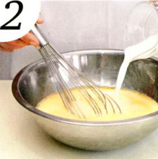 1 . Начните готовить вечером. яйца слегка взбейте с солью и сахаром. Сильно не взбивайте, нужно добиться только однородности смеси - чтобы исчезли белковые сгустки. Оставьте на 3-5 минут, чтобы желтки приобрели более интенсивный желтый цвет.