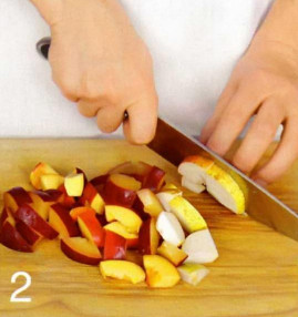Вам понадобится : стакан круглозерного риса (лучше для ризотто) 500 мл молока или нежирных сливок 4 темные сливы 2 мелких нектарина 1 груша 1 ст. ложка ванильного сахара 60 гр. сливочного масла 100 гр. коричневого сахара , морская соль