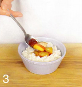 рисовая каша рецепт 3 . Разложите кашу по тарелкам, выложите фрукты. Полейте сиропом и сразу же подавайте.