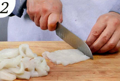 для этого салата ва м нужно постаратся найти самые толстые филе кальмаров, но если вы не смогли найти толстые и у вас только тонкие не беда, просто уменьшите время приготолвения вполовину.