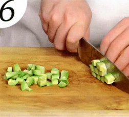 6 . Очистите авокадо от кожуры, удалите косточку. Мякоть авокадо нарежьте кубиками. Выложите на тарелки салатные листья и авокадо. Нарежьте утиные грудки поперек тонкими ломтиками, уложите на салат. Полейте заправкой и сразу подавайте.