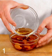 1 . Заварите зеленый чай 1 стаканом кипятка, дайте настояться 4 минуты, процедите, залейте чайным настоем курагу и вишню. Оставьте на 15-30 минут.