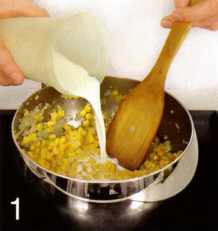 | Время приготовления : 15 минут | | Количество порций : 4 штуки | Готовим сливочный кукурузный крем Вам понадобится : 300 гр. зерен кукурузы (свежих или замороженных), 1 большая луковица, 1 маленький пучок петрушки, 200 мл молока, 50 мл сливок 20% жирности, 1 ст. ложка муки, сливочное масло, соль, свежемолотый белый перец  | 1 . Очистите и мелко нарежьте лук. Разогрейте немного масла в глубокой сковородке, положите лук и потушите на небольшом огне до мягкости, не давая луку менять цвет примерно 5 минут после чего добавьте кукурузу. Если зерна свежие, влейте полстакана воды и выпарьте. Если замороженные, обжаривайте, пока зерна не разморозятся. Влейте молоко и готовьте под крышкой на небольшом огне ещё 5 минут. |  | 2 . Разомните кукурузу толкушкой для картофеля, прогрейте еще, посолите и поперчите. |  | 3 . Сливки смешайте с мукой и влейте в сковородку и потомите 2 минуты, не доводя до кипения и энергично перемешивая. Посыпьте мелко нарезанной петрушкой, подавайте к баранине на гриле, или к другим мясныь блюдам. | Предлагаем посмотреть рецепты на пасху: |