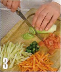 | 1 . Куриное мясо разрежьте на кусочки и отварите, добавив петрушку, сельдерей, лавровый лист и соль. Выложите в закрытую посуду а бульон процедите и поставьте на медленный огонь. |  | 2 . Peпy очиститу, нарежьте соломкой и сварите в кипящей воде 10 минут. Откиньте на сито и обдайте холодной водой, чтобы удалить горечь. Добавьте в бульон. |  | 3 . Морковь и яблоко очистите и нарежьте соломкой. Белую часть лука-порея нарежьте тонкими кольцами, темно-зеленую небольшими квадратами. Помидоры нарежьте кубиком. Добавьте все в суп и варите 15 минут.Разлейте суп из репы по тарелкам. В каждуюположить несколько кусочков куриного мяса и присыпте зеленью укропа.Отдельно подайте сметану.. |