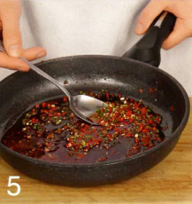 5 . Нагрейте сковороду, положите семена кинзы, залейте их маслом. Как только семена начнут шипеть, добавьте чеснок и стебли кинзы. Через 30 секунд снимите с огня, добавьте чили, соль и паприку, дайте настояться 30 минут.