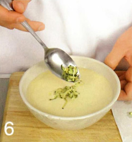 овощной суп +с кабачками рецепт 6 . Разлейте суп по тарелкам, выложите в каждую обжаренную соломку цукини. посыпьте измельченной зеленью и подавайте немедленно или остудите, поставьте в холодильник на 2 часа и подавайте холодным