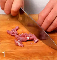 1 . У утки отделите мясо от костей. Грудку мелко нарежьте. Остальное мясо (включая кожу и жир) пропустите через мясорубку вместе с мякотью свинины и шпиком.