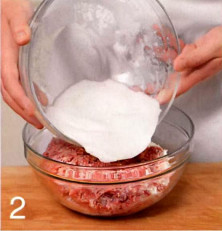 2 . В большой миске смешайте получившийся фарш и кусочки нарезанной грудки. Добавьте соль, перец и размоченные в сливках хлебные крошки. Влейте слегка взбитые яичные белки, вино и коньяк. Все тщательно перемешайте, накройте крышкой и поставьте в холодильник на 1 час.