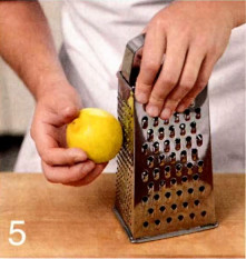 5 . Для заправки зиру поджарьте на сухой сковородке на небольшом огне, 1 минутку, растолките в ступке вместе с чесноком. С лимона снимите цедру мелкой теркой, сок выжмите.