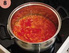 | 8 . Добавьте помидоры (вместе с соком), тушить 5–7 минут |