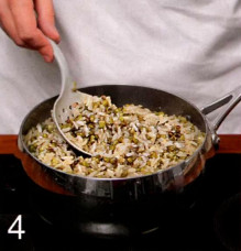 3 . Тщательно промойте рис в сите в нескольких водах, чтобы стекающая вода была полностью прозрачной. Стряхните с риса воду.