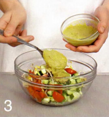 | Время приготовления : 15 минут | | Количество порций : 4 штук | Салат с авокадо и ростками Вам понадобится :2 горсти любых ростков (золотистая фасоль, подсолнечник, горчица), 2 средних огурца, 10-15 помидоров черри, 1 крупное авокадо, 1 зубчик чеснока, 1 большой лист нори, светлый соевый соус, сок 1 небольшого лимона, 2 ст. ложки оливкового масла.  | 1 . Нори разломайте на небольшие кусочки и смелите в кофемолке в муку Для заправки чеснок измельчите. Разрежьте авокадо пополам, удалите косточку, ложкой выньте мякоть и положите ее в блендер. Влейте туда же лимонный сок, соевый соус (от 1 до 3 ст. ложки, по вкусу), добавьте чеснок и включите мотор. Измельчите до однородности. Не выключая мотор, влейте оливковое масло. Если заправка кажется вам слишком густой, добавьте немного теплой воды. |  | 2 . Огурцы по желанию очистите от кожицы, мякоть нарежьте четвертинками или небольшими кубиками. Помидоры черри нарежьте четвертинками. |  | 3 . Смешайте в миске огурцы, черри и ростки. Полейте заправкой, перемешайте, разложите по тарелкам и приправьте нори. Подавайте немедленно. | |