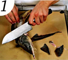 1 . Осетра очистите, разделайте и нарежьте на куски. Желатин замочите в небольшом количестве воды.