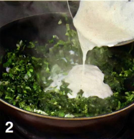 |  | 1 . Зелень вымойте обсушите и измельчите. Лук и чеснок очистите и измельчите. Разогрейте в сотейнике 2,5 ст. ложки сливочного масла, положите лук и готовьте на небольшом огне под крышкой 10 минут. Добавить всю зелень и чеснок, приправьте солью и перцем и готовьте помешивая, ещё 5 минут. Слейте в миску выделившуюся жидкость. |  | 2 . В небольшой сковороде растопите оставшееся сливочное масло, добавьте муку и готовьте , помешивая, 1 минуту. Влейте горячее молоко и жидкость от зелени. Все время размешивая, доведите до кипения. Приправте мускатным орехом. Уменьшите огонь и готовьте , пока соус не загустеет, это примерно 3 минуты. Влейте получившийся соус в тушеную зелень. |  | 3 . Переложите приготовленную смесь в форму для запекания, присыпте хлебными крошками и сбрызните оливковым маслом. Поставьте в разогретую до 190 °С духовку на 25 минут. После того как ваша запеканка будет готова дайте ей остыть. Перед подачей вы также можете посыпать вашу запекану обжаренными тыквенными семечками. | |